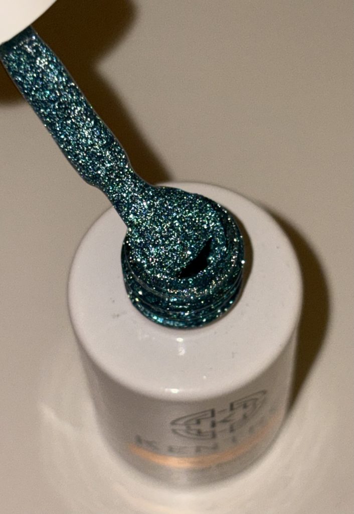 The Peacock Flash glitter is a super dark emerald green glitter with some chunkier pieces going through it. It can look a different shade under different lights. Perfect for Christmas Tree designs.